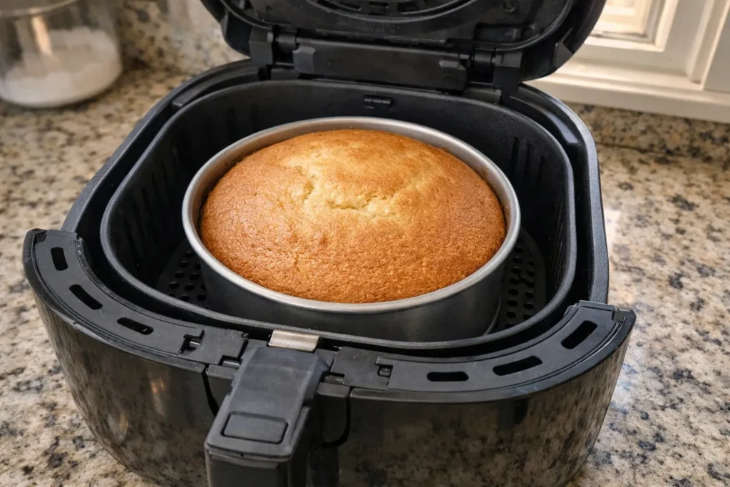 - Set the air fryer to cook at 340°F for 35 to 40 minutes until the cake is done.