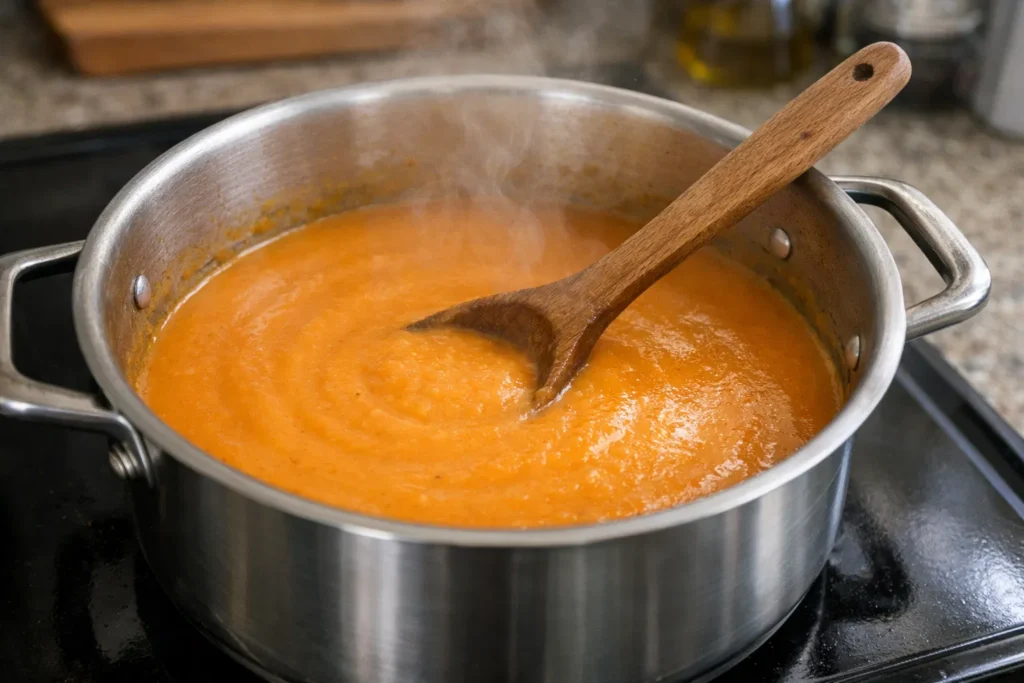 - Remove from heat and blend the soup until smooth.